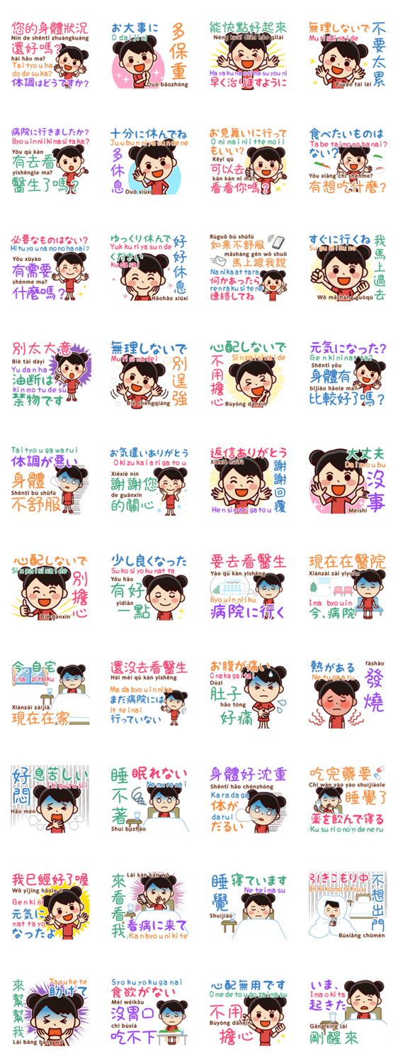 体調不良伝える&気遣う---日本語⇔台湾語 -LINEスタンプマニア