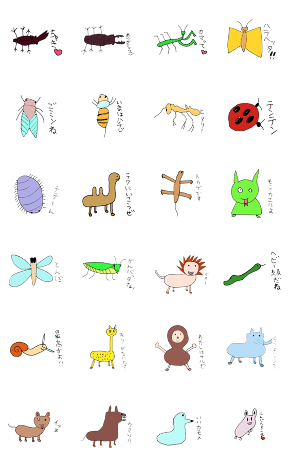 心ありまくりの生き物スタンプ