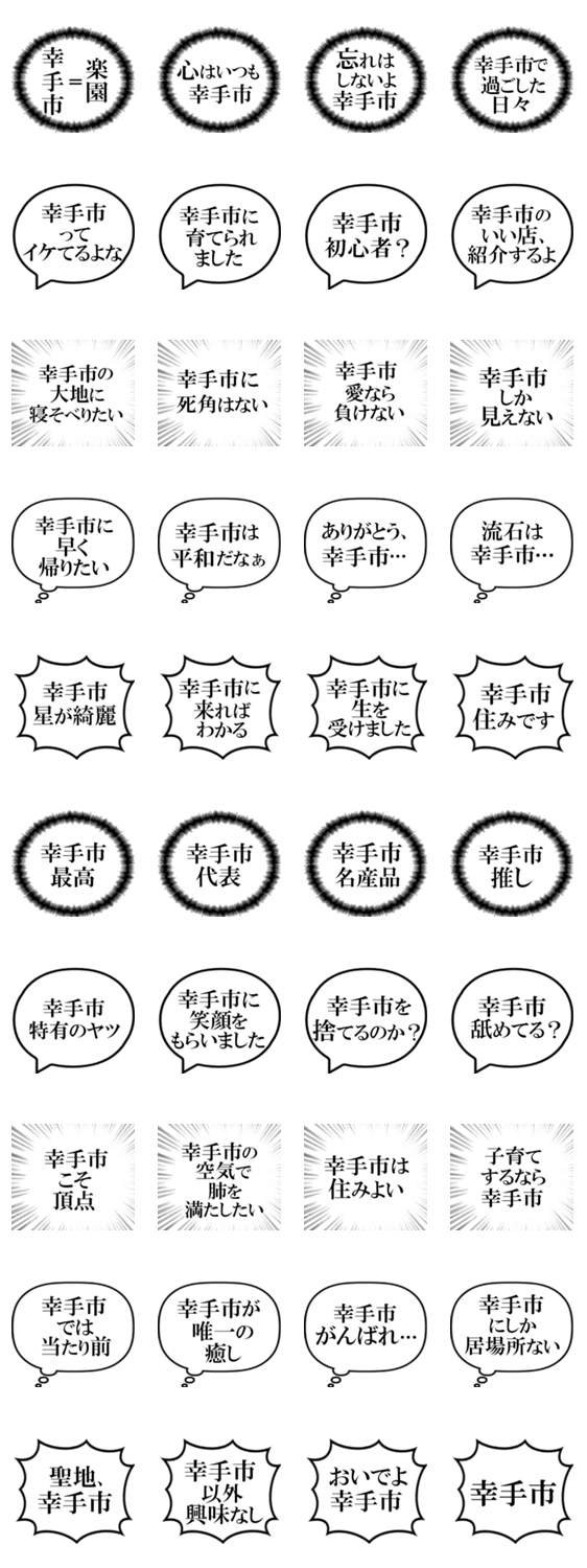 埼玉県幸手市民もそうでない方も使える、愛に溢れた吹き出しスタンプです。