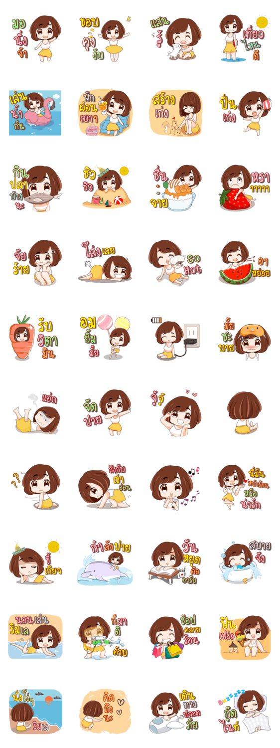 | スタンプ説明 | Angun cute and naughty girls come back in special version. Let's join their fresh and active moments in Summer. |