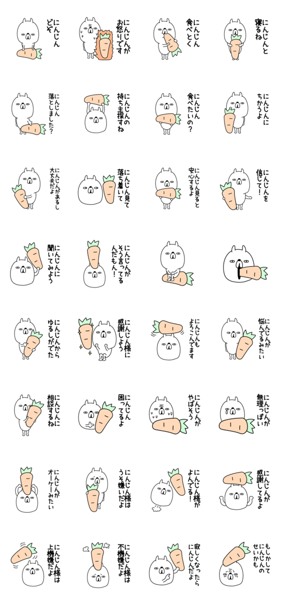 細長い哀愁うさぎとにんじん -LINEスタンプマニア