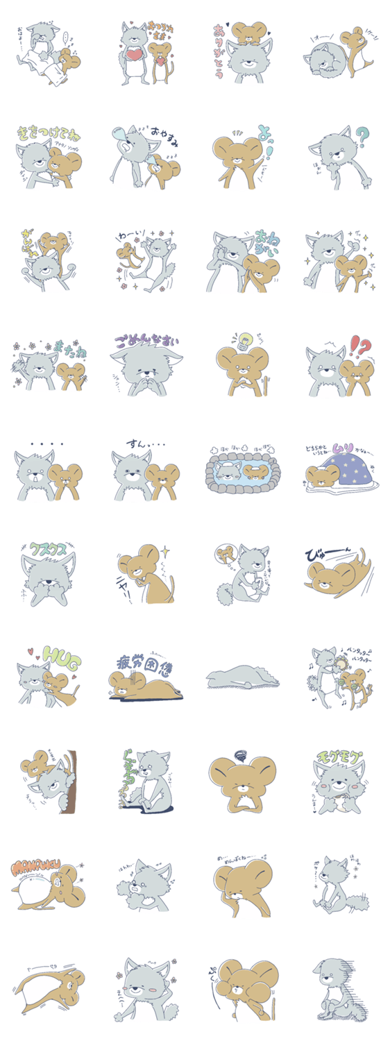 優しくちょっと不器用なオオカミのゴーシュと好奇心旺盛でとっても元気なエゾクロテンのリック。 仲良し2匹の可愛くほっこりなスタンプ。