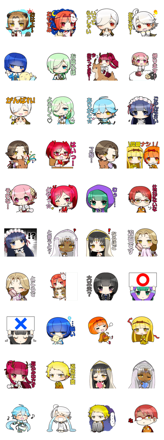 昭和女子大・古典教材開発プロジェクトにて、古典語の助動詞を擬人化したキャラクターたちによるスタンプです。