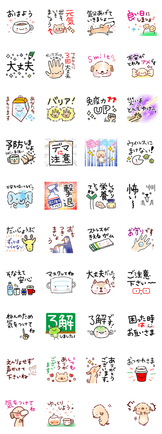 日常ふとしたときにやってくる、不安な出来事を吹き飛ばしたい時に。安心感&心強い♪スタンプセットです。