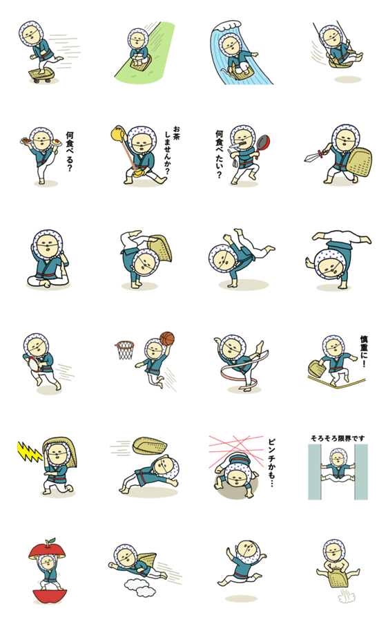 どじょうすくいですが、どじょうはすくってません。 真顔などじょうすくいさんが、アクロバティックに遊んでいるシュールなスタンプです。様々な場面でお使い下さい。