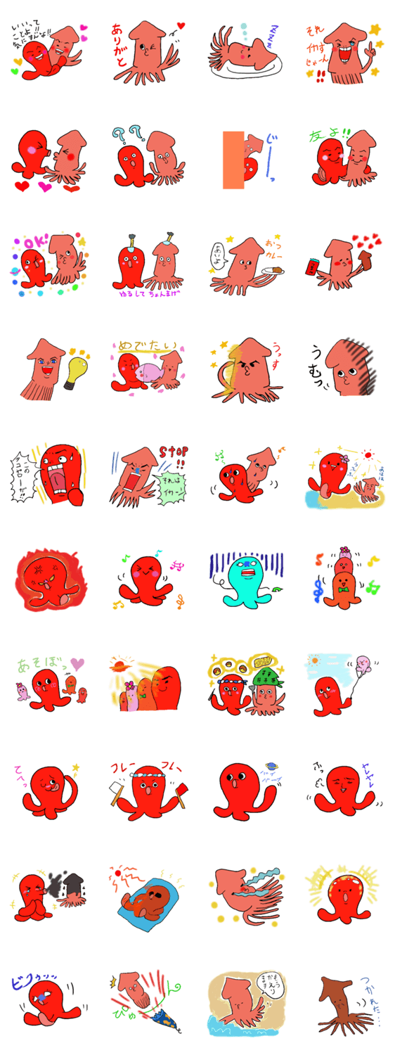 タコウインナーとスルメイカ君 -LINEスタンプマニア