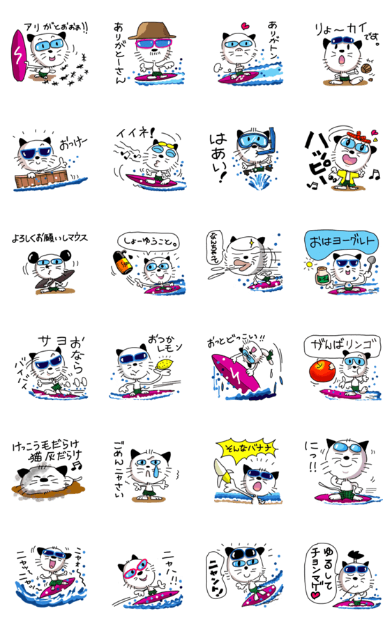 サーフィンをする猫です。時々駄洒落を言います。日常良く使う会話や感情表現で構成しています。