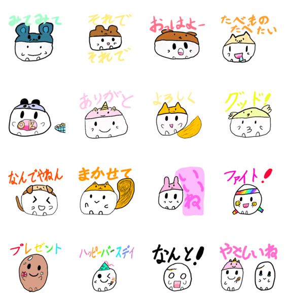 たまごがいろんなどうぶつのぼうしを かぶってたり、かぶってなかったりするよ。