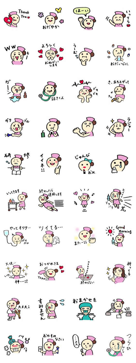 看護師の皆様毎日お疲れ様です。使いやすいスタンプを集めました。
