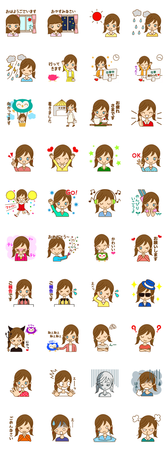 あーちゃんシリーズ第1弾!ポップでキュートな女の子が色々な表情で日常会話を表現。楽しい会話のお手伝いをします。