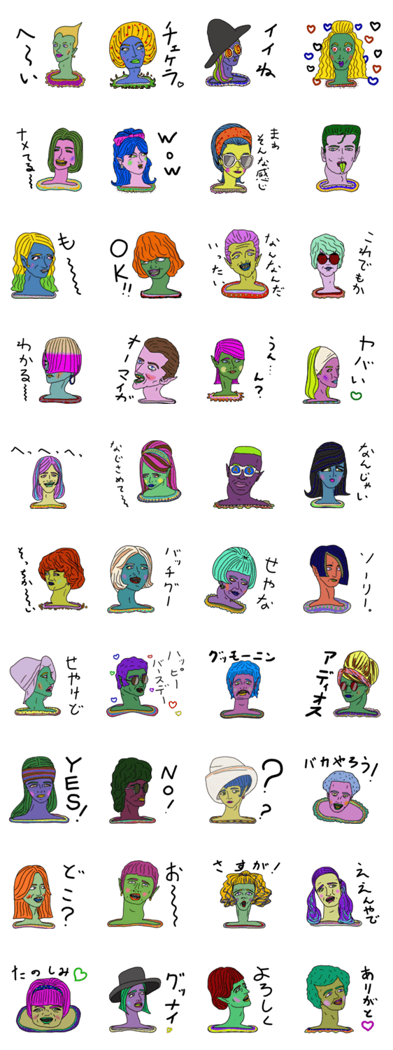 POPなエイリアン達のスタンプ!ちょっと関西弁もでちゃってます。