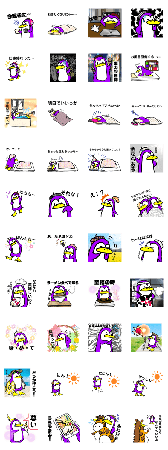LINE Creators Studioでつくったスタンプです。オリジナルのゆんペンギンのスタンプです。お寝坊で夜が好きで、社畜でたまに毒を吐きます。