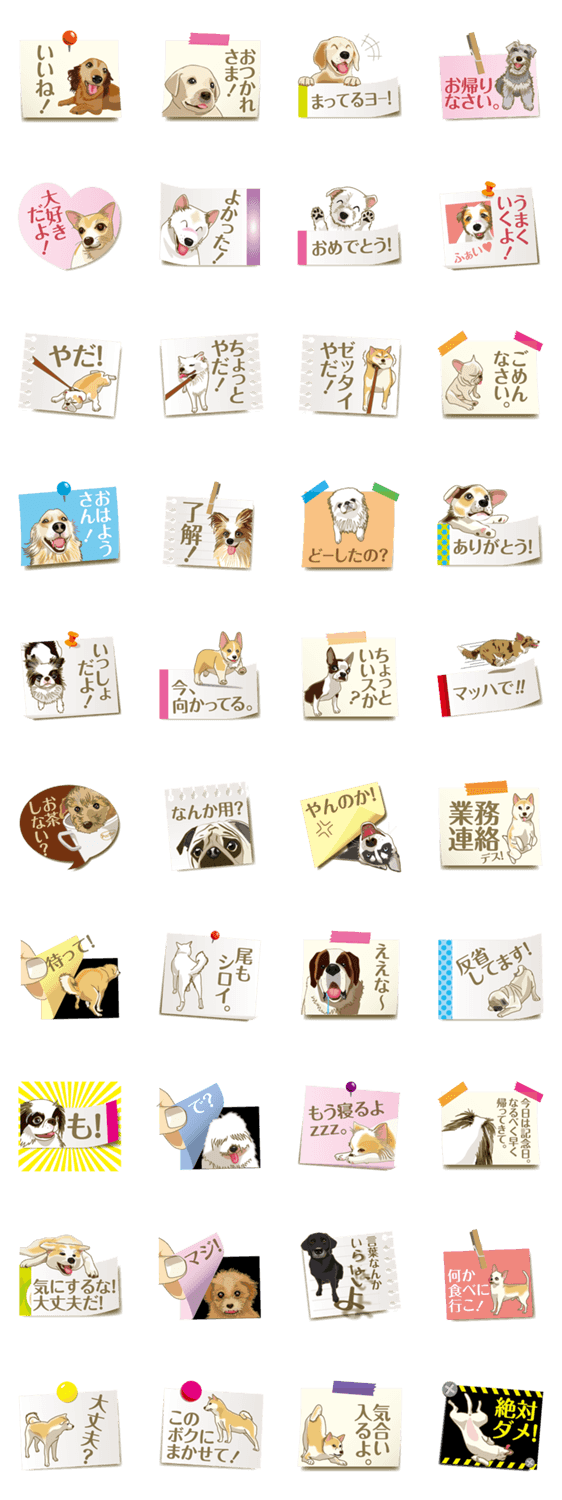 主にカフェの常連さんのわんこちゃん達をモデルに作りました。付箋感覚でご利用ください。