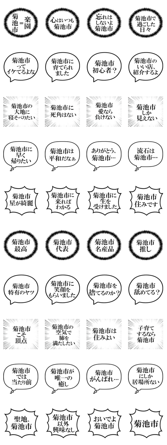 熊本県菊池市民もそうでない方も使える、愛に溢れた吹き出しスタンプです。