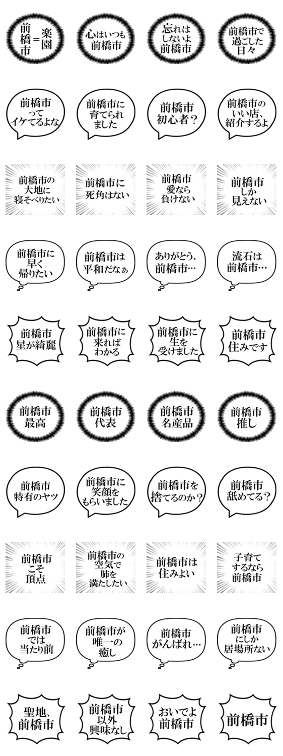 群馬県前橋市民もそうでない方も使える、愛に溢れた吹き出しスタンプです。