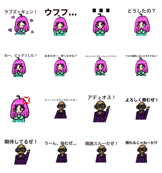 LINE Creators Studioでつくったスタンプです、モコちゃん&サングラス男をよろしくね。