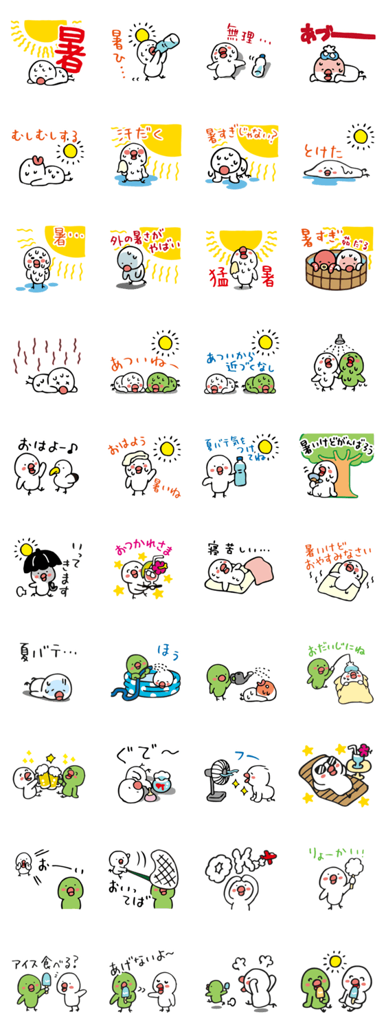 とにかく暑い日、あつい夏の日、猛暑の日に使えるスタンプです!白ひよこのひよやんシリーズ第8段♪
