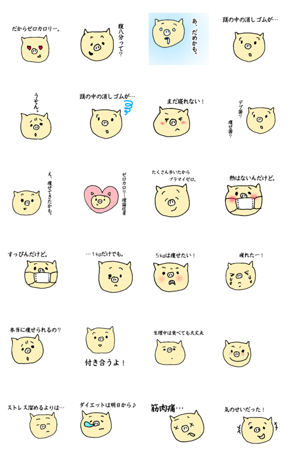ダイエットを頑張りたい気持ちはあるけど、なかなか行動がついてこない女子に使ってもらいたいスタンプです♪