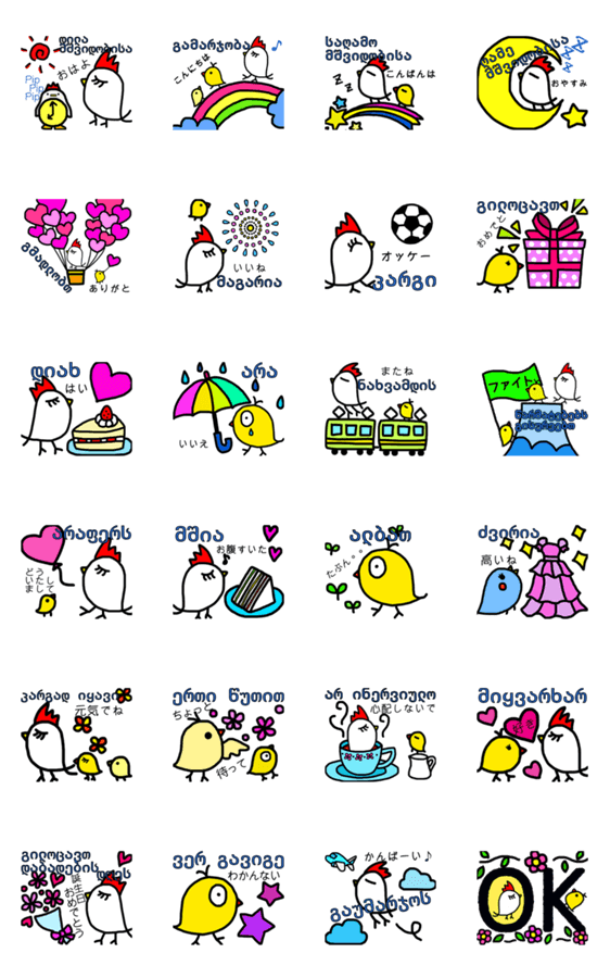 ジョージア(グルジア)語と日本語のアニメーションスタンプです。