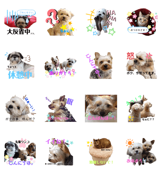 LINE Creators Studioでつくったスタンプで、 ウチに居る犬と猫です‼️