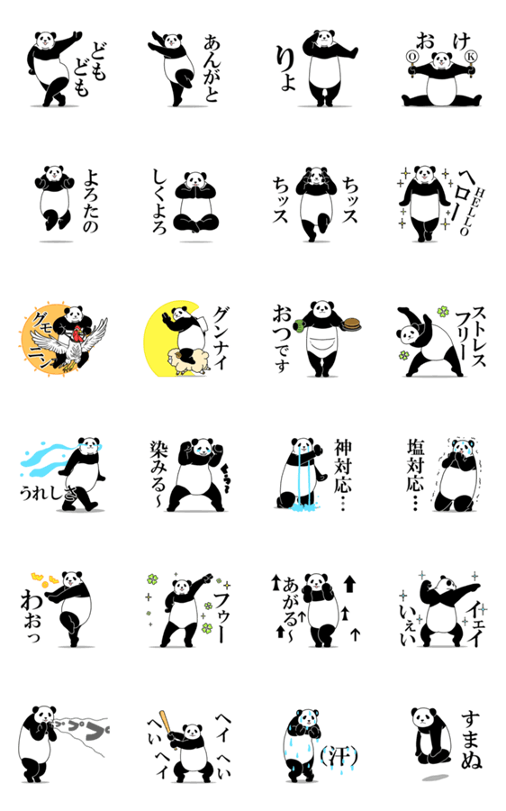 短めの言葉で気軽に使えるモーレツに動くパンダです!
