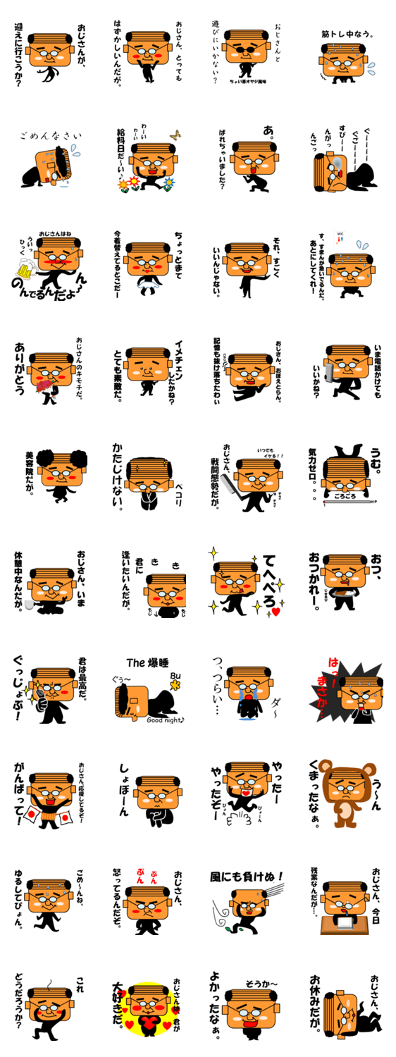 四角いおじさんが繰り広げるおちゃめなスタンプ。