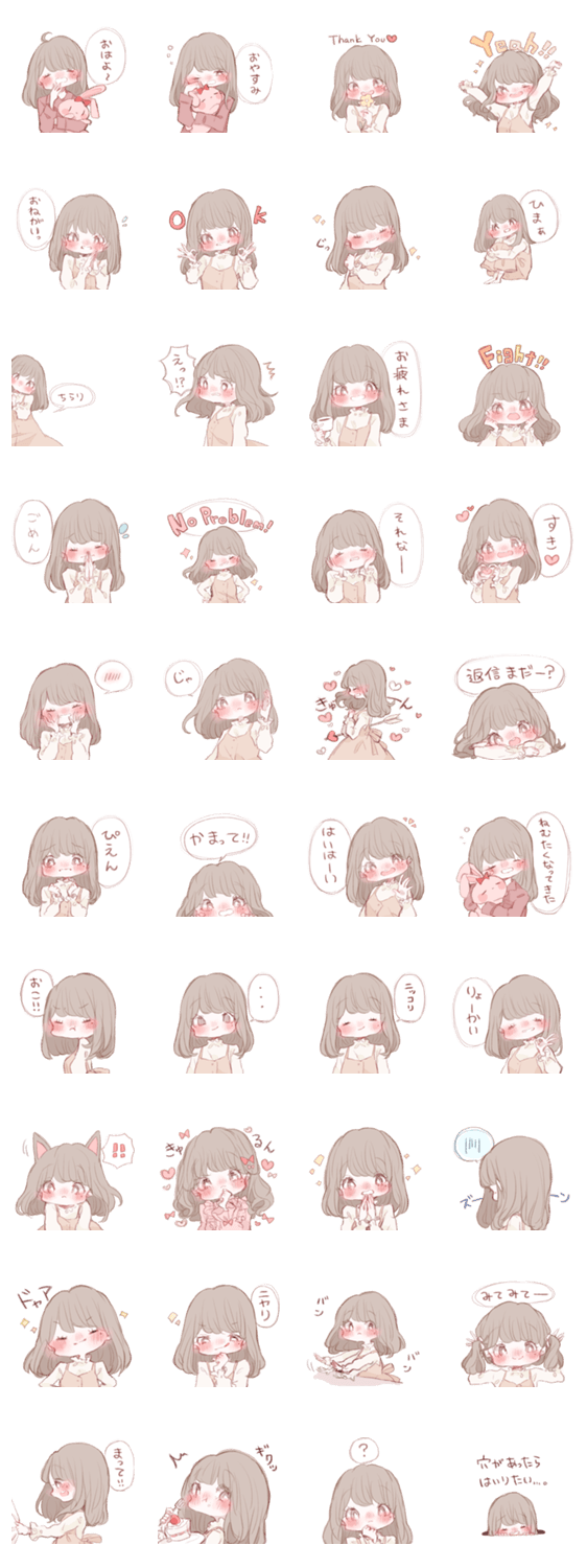 泣きぼくろちゃんスタンプ第二弾です。 第一弾に比べて髪の毛がのびました。
