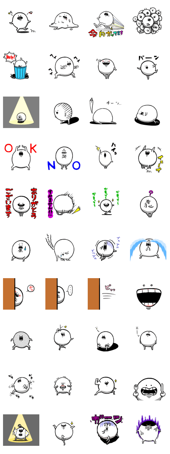 まるい謎の生命体が全身を駆使し、色々表現します。
