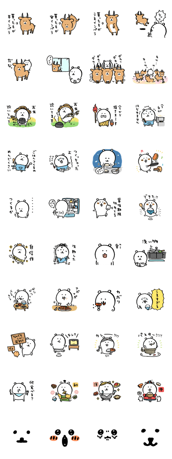 自分ツッコミくまとインパラと料理。 最後の一行は食べ物にスタンプとして貼り付けて遊んでね