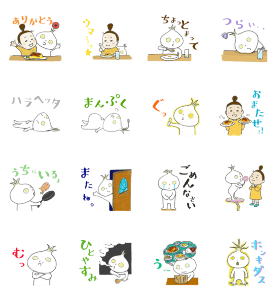 三軒茶屋の洋食屋さん「グラスオニオン」の公式スタンプ第一弾。シュールなマスコットキャラクターのグラちゃんがスタンプになりました。