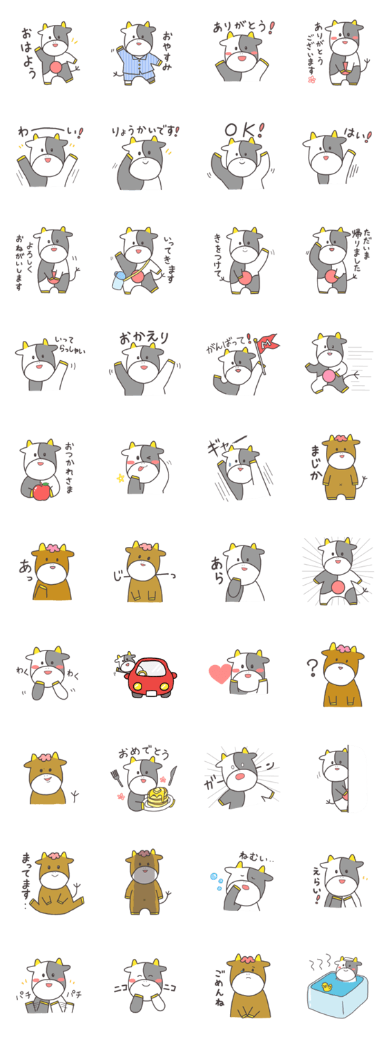 日常で使いやすい乳牛と肉牛のスタンプ。 うしたん と にくうしたん。ゆるゆる。酪農。牛好きなあなたに。