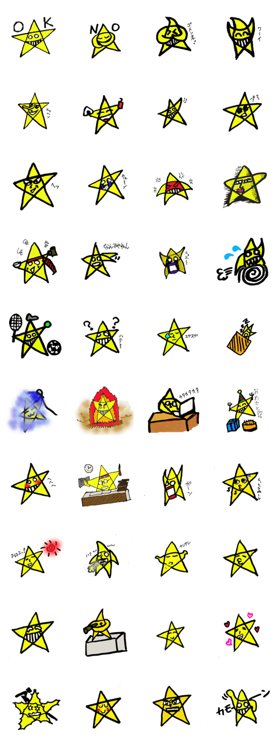 星に顔がついたキャラクター、その名も星亮(ほしすけ)の感情を表したスタンプです。日常生活で使用することの多い感情表現を多く取り入れました。
