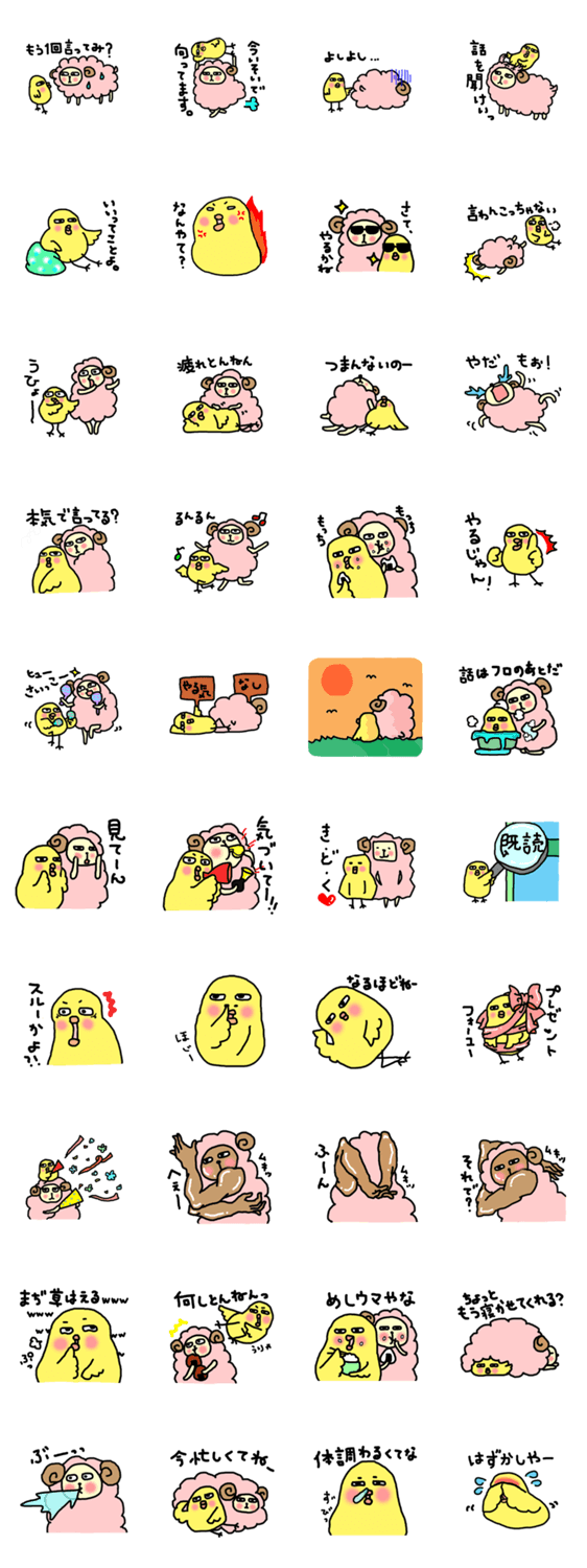 口の悪いひよこと臆病なひつじのスタンプです。相手を追いつめたい時に使ってね!