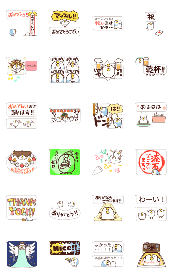 あのとり。の見やすいデカ文字・吹き出しスタンプです!お祝い言葉やトークを彩るかわいいリアクションで、あのとり。が楽しくトークを盛り上げます!( ・8・ )
