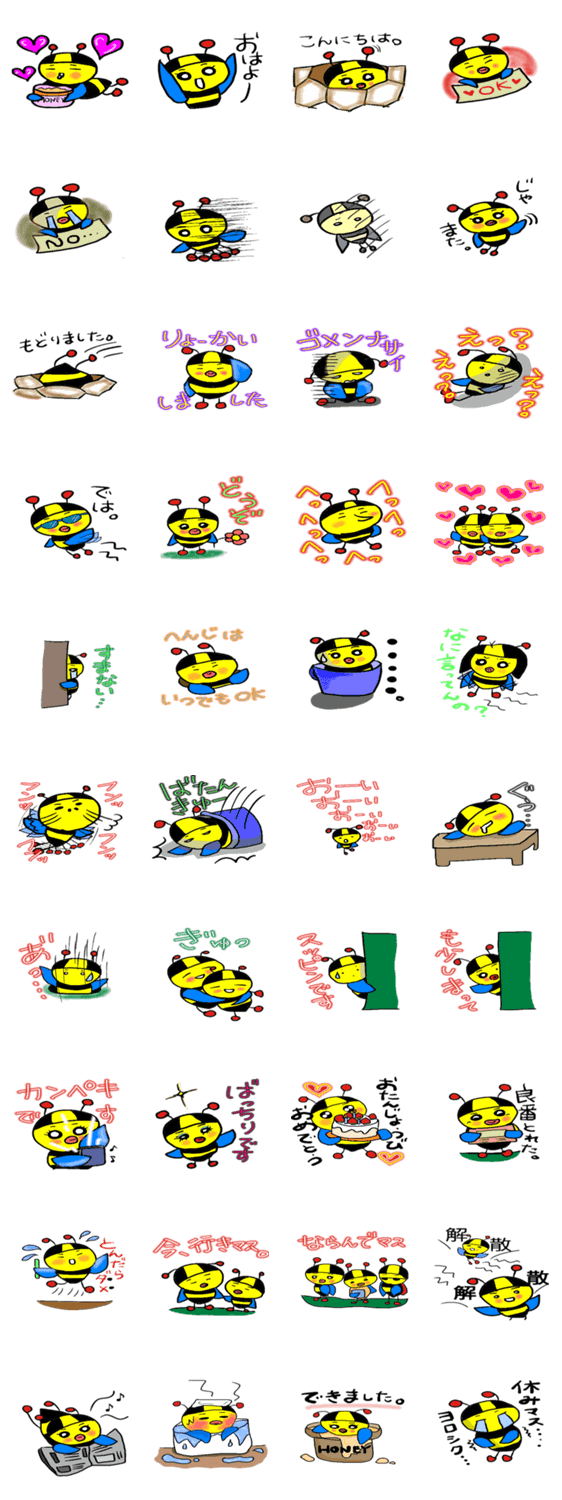 笑ったり泣いたり怒ったり。表情豊かなミツバチみつ子のスタンプの第2段です。