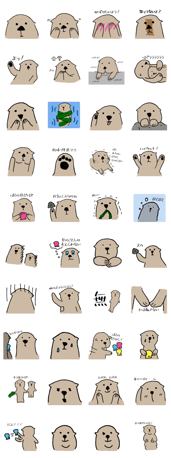 とにかくゆるーいラッコの群れの様子をスタンプにしました。