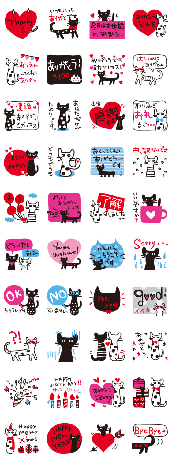 大人かわいいネコのありがとう♥スタンプ -LINEスタンプマニア