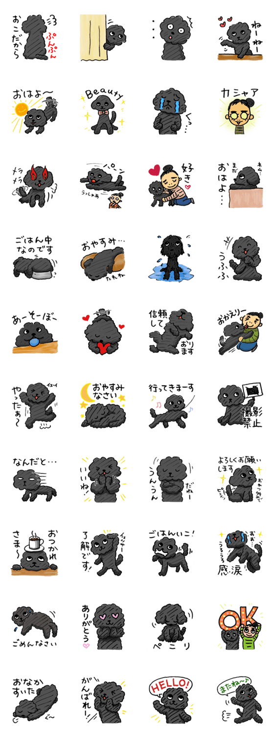 黒トイプードルのロンと飼い主のうにこの、楽しくかわいいスタンプ。