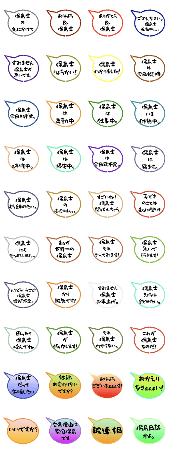 保育士が日常で使う言葉から、仕事場での言葉を厳選してアレンジしました。トークで使えば、保育士らしい会話を展開することができできます。