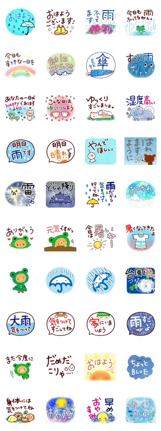 雨の日・雨の季節に使えるお天気スタンプセットです。
