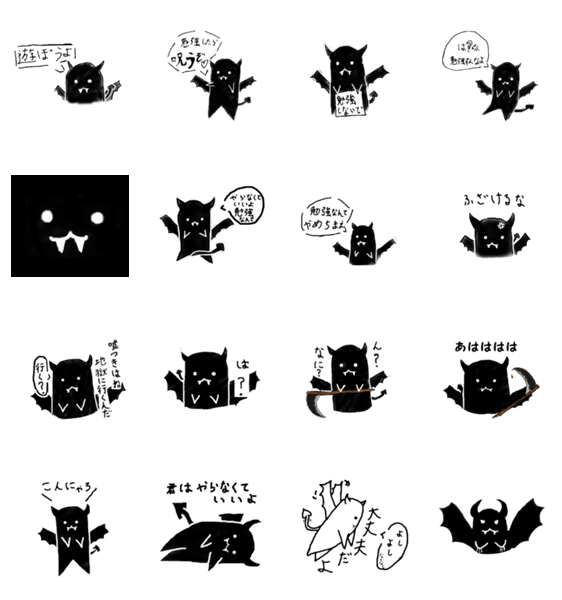 勉強しないでと3人?+1の悪魔が言うスタンプです。
