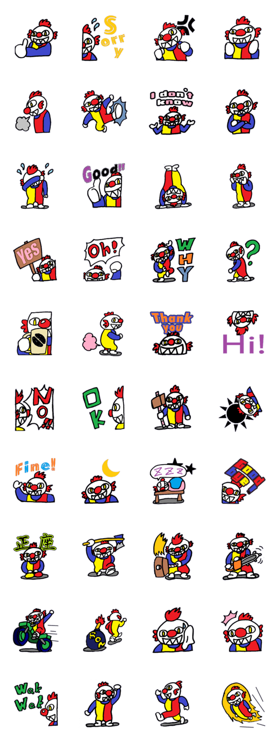 絶対オススメ!非常に可愛らしいピエロのスタンプ。日常会話に変わったテイストを加えてみては!
