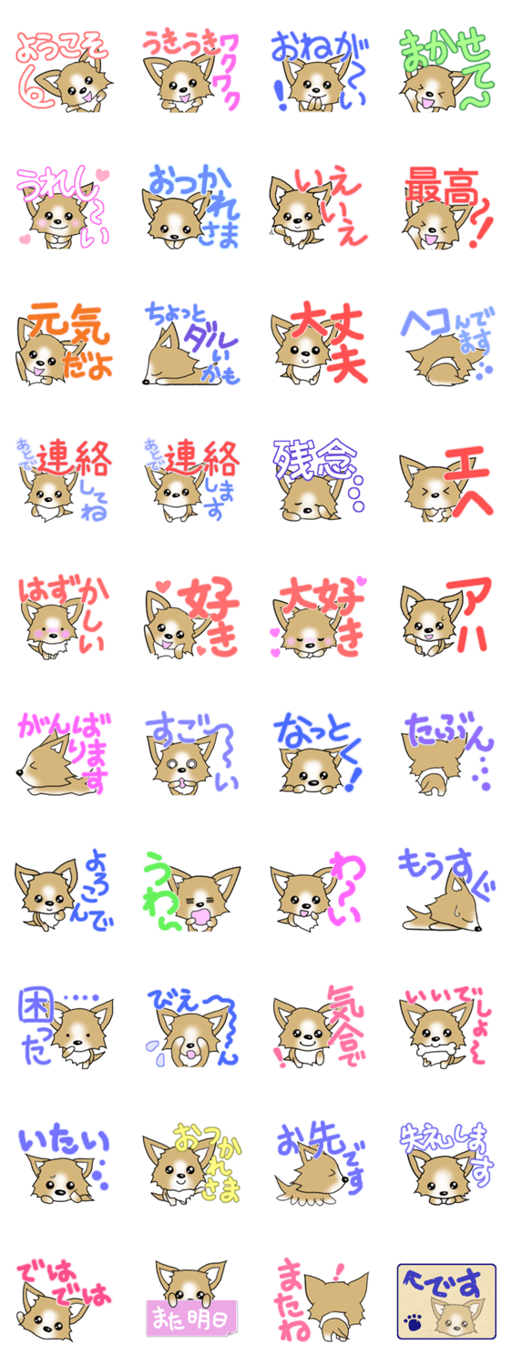 チワワさんがお話します。『チワワ 犬スタンプ』の第二弾。可愛がってください。【かたこスタンプ】