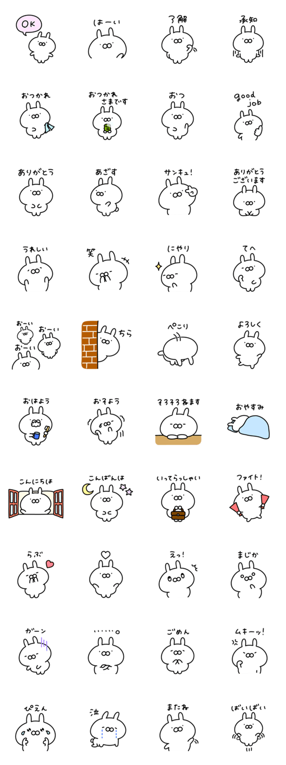 もちっとした白いうさぎのうさたろスタンプパート15です。シンプルで日常会話に使いやすい!