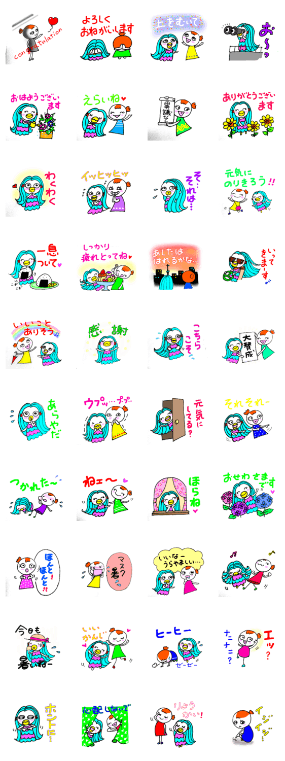 ポジティブアマちゃんとてるちゃんのご挨拶 -LINEスタンプマニア