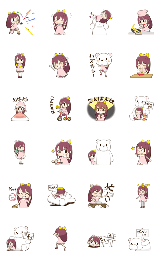 自作創作、動く4コマ「ヒマリとくま」のスタンプです
