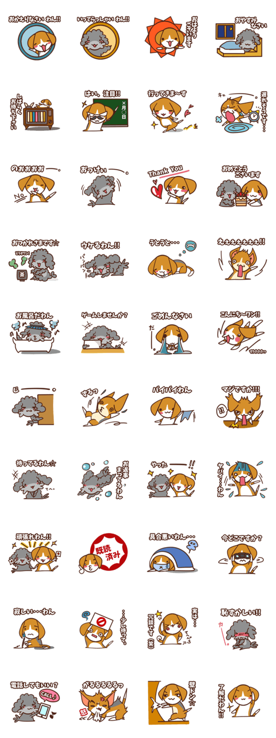 ビーグルとプードル 2匹の仲良し犬がスタンプ内で貴方のLINEのサポートをします。