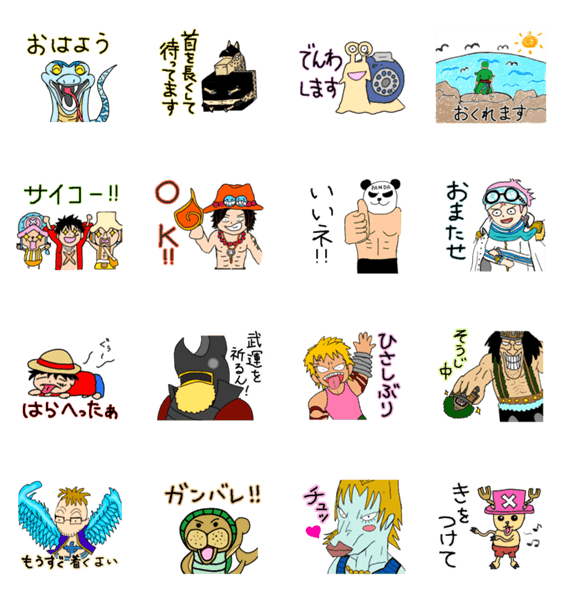 ONE PIECEのキャラクターを使って、欲しかったスタンプを考えてみました。