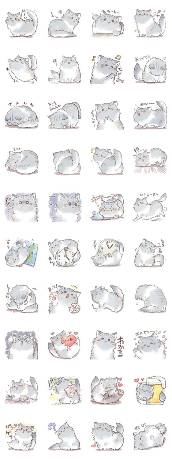 モフモフねこの「ぼぼち」のスタンプです。普段使いにどうぞ!