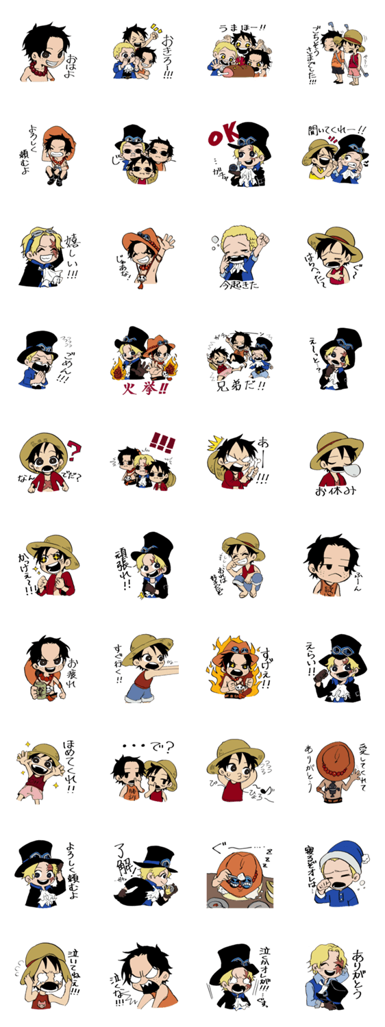 ONE PIECEのASL(エース、ルフィ、サボ)の可愛い系スタンプです。